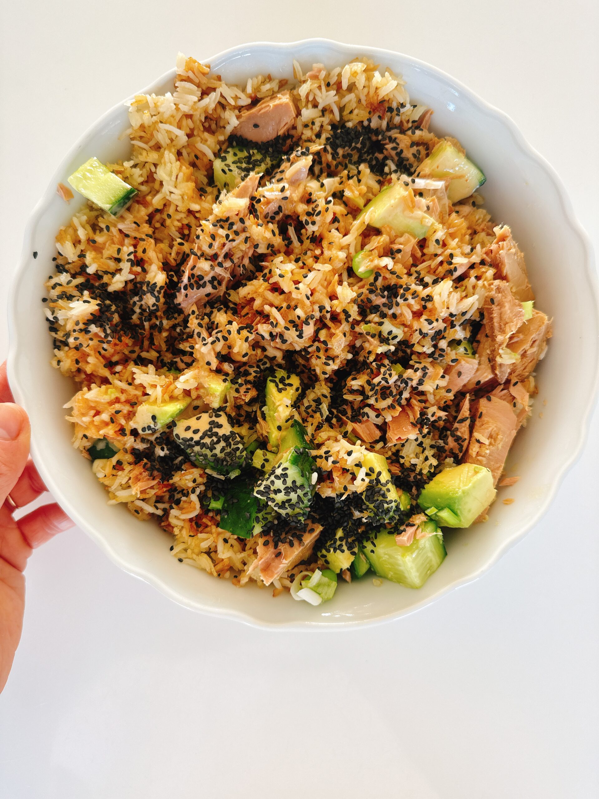 Deze crispy rijst tonijn salade is een smaakvol én voedzaam gerecht. De rijst voorziet je van de nodige brandstof om de namiddag energiek door te komen. De wilde tonijn is een goede eiwitbron die je een hele namiddag een verzadigd gevoel zal geven. Geen dipjes, geen cravings. Yay!